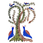 Gond Peacock with Tree Art, Handmade Tribal Multicolour Wall Art (11.6×8.2 Inches)