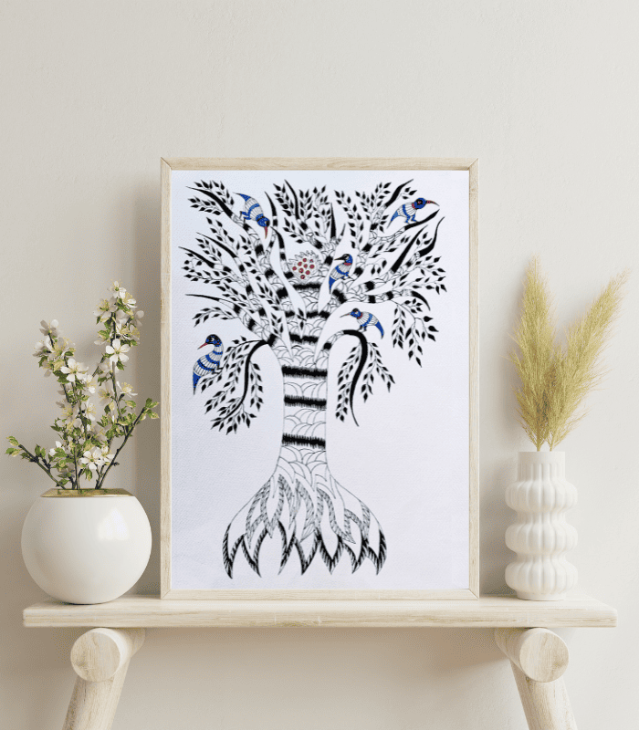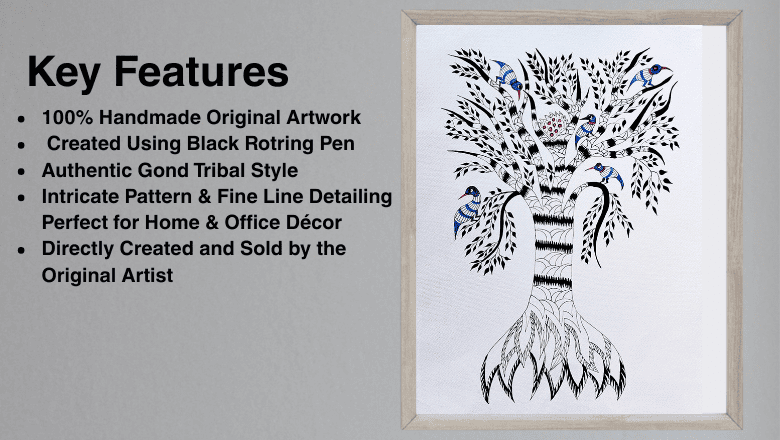 Each artwork is carefully hand-drawn by the original artist, ensuring originality and authenticity. This is not a print — it is a 100% handmade Gond artwork created with cultural respect and artistic dedication.