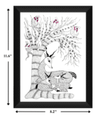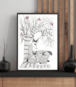 Gond Peacock with Tree Art is a beautiful expression of traditional Gond tribal art that celebrates nature, life, and vibrant storytelling. Handcrafted using Rotring pen with natural multicolours on premium sheet paper, this artwork features elegant peacocks resting beneath a richly patterned tree filled with organic tribal motifs.