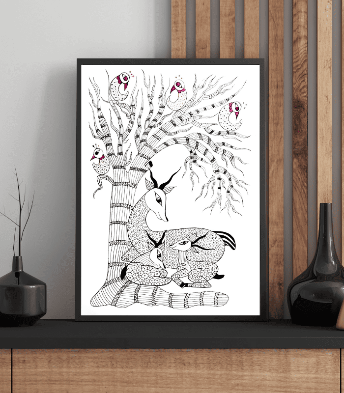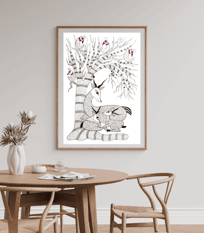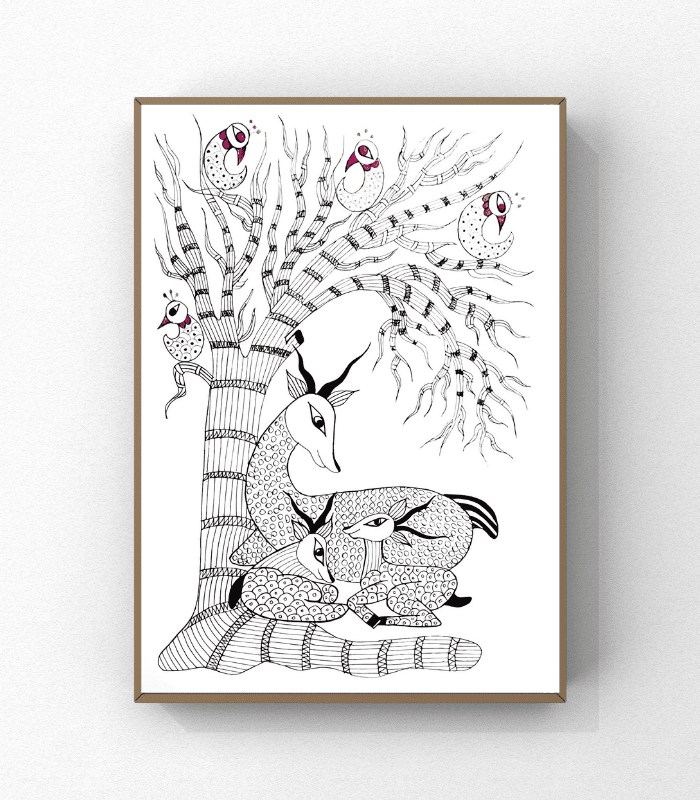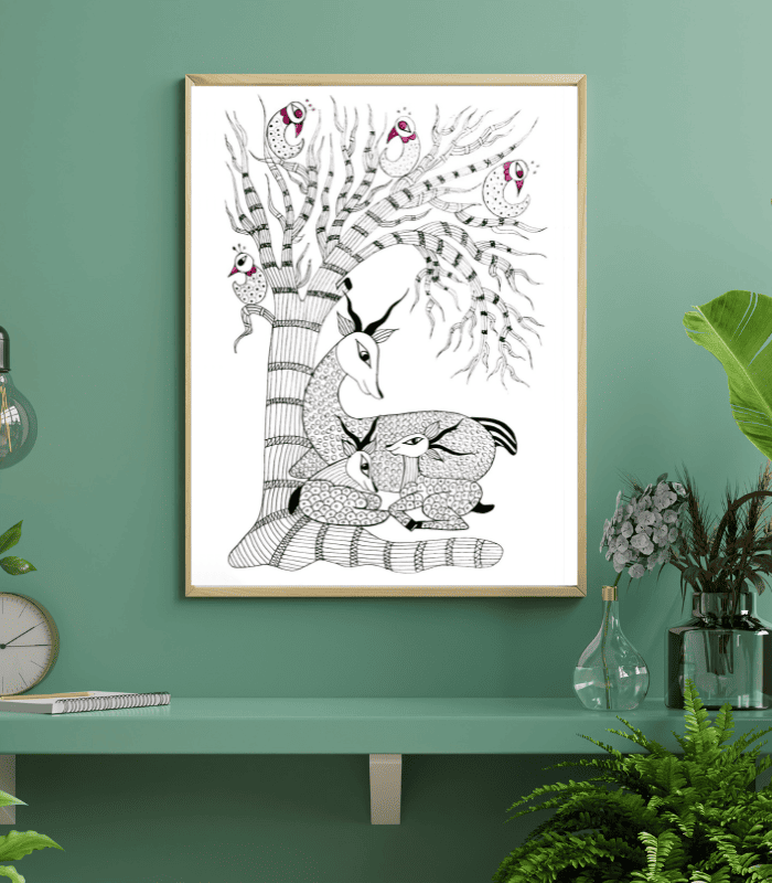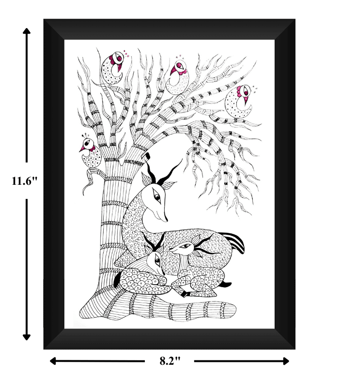 Each piece is carefully hand-drawn and coloured by the original artist, ensuring originality and authenticity. This is not a print — it is a 100% handmade Gond artwork created with cultural passion and artistic dedication.