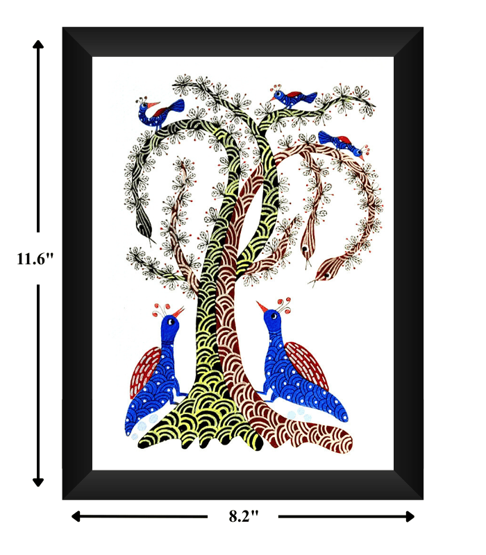 Be the first to review “Gond Peacock with Tree Art, Handmade Tribal Multicolour Wall Art (11.6×8.2 Inches)”