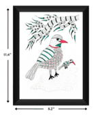 Pigeon Thinking Gond Art Drawing, Handmade Tribal Bird Wall Art (11.6×8.2 Inches)
